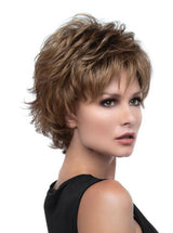 Alyssa by Envy Wigs is a trendy layered shag with bangs that can be styled in various ways. Whether you want a bold and spiky look or a softer one, this short wig is perfect for all ages. The capless (open-cap) construction adds to its lightweight feel, and it is also available in a petite cap size. Elevate your style with Alyssa!
