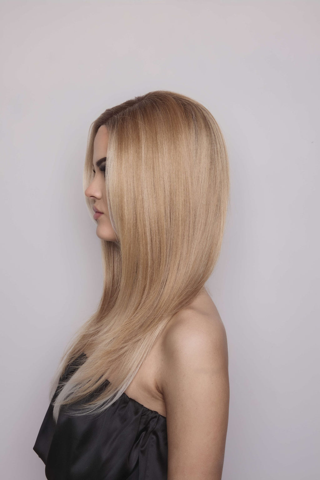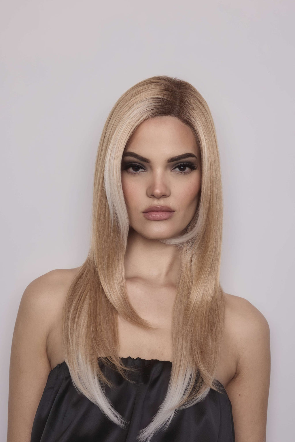 • partially hand-tied cap – each individual hair is carefully hand tied to the base. This creates natural movement and allows the hair to move freely. The soft stretch cap makes it more comfortable to wear and is ideal for a sensitive scalp.