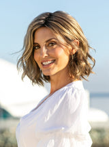 Charlotte by Envy features a chic, wavy layered bob that falls just below the chin for a stylish mid-length look. Crafted with synthetic fibers, this wig includes a monofilament part that mimics natural hair growth and a lace front for a seamless, realistic hairline.