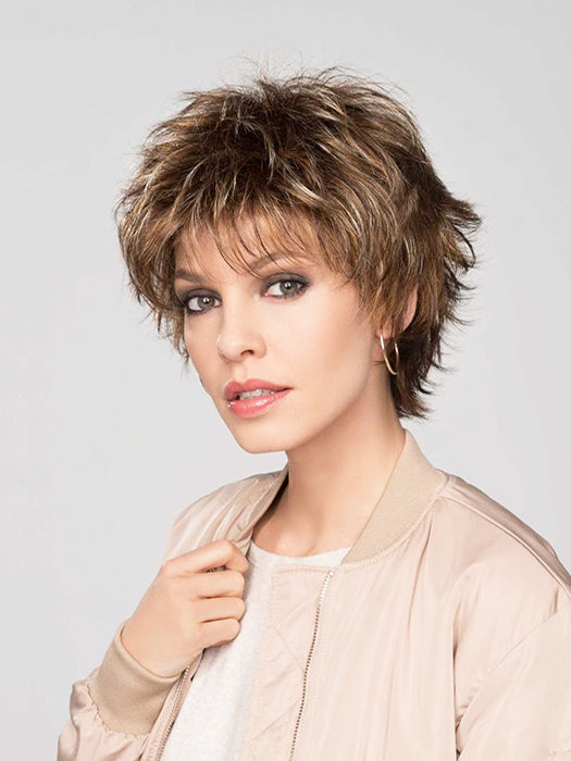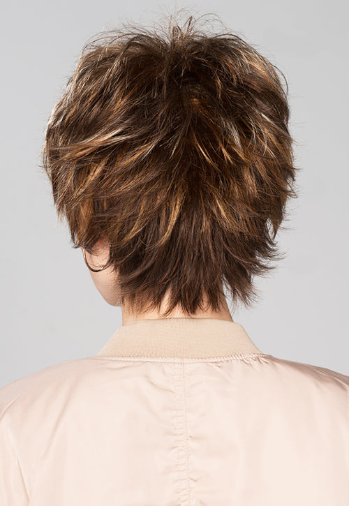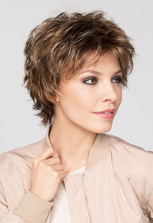 • base design: hair is sewn by machine on to wefts, which are in turn attached, using a lamellar technique, to fine cotton tapes. The weft adapts well to the shape of the head, providing a fantastic fit and volume at the roots. Wefted wigs are easy to style and allow air circulate around the scalp.