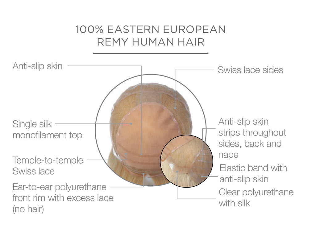 • monofilament top - Creates the illusions of natural hair growth and allows you to part the hair in any direction.