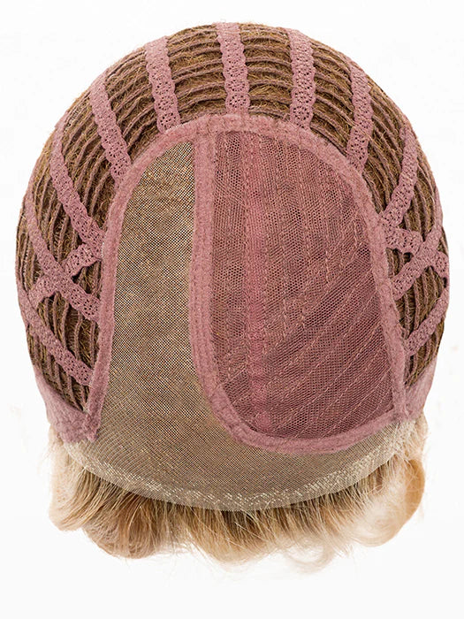 This type of cap features a wonderfully natural crown or “crest” area, where each and every hair has been individually weaved. This area varies on all models, depending on the style, it is usually either pointed or elongated. The wig looks particularly natural in areas where the skin is visible, as the weave of wig hair appears to flow directly from your own scalp, just like natural hair growth. The rest of this wig mostly consists of a wefted cap in which the hair is sewn into fine cotton tapes. Wefted caps adapt very well to the shape of the head and allow air to circulate.