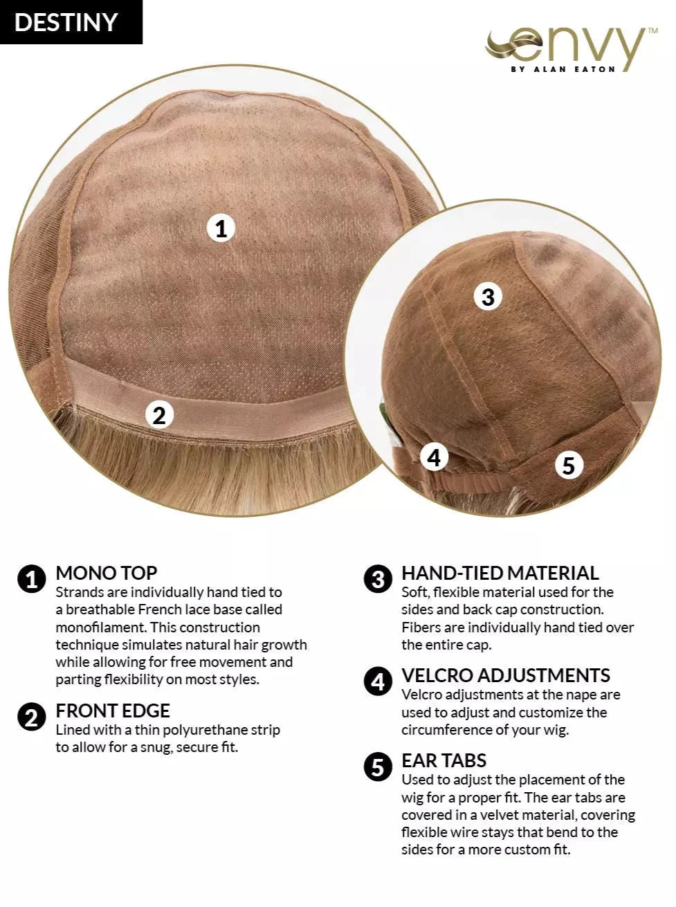 The Destiny Wig by Envy Wigs is a timeless style, featuring a chic pixie cut with playful, textured bangs. You can easily create a spiky edge with a flat iron, or opt for a softer look by heat rolling the wig. Envyhair's heat-friendly fiber blend allows you to personalize your style. Plus, the hand-tied sides and back, along with the Mono Top construction, give this wig a natural appearance that will impress everyone.