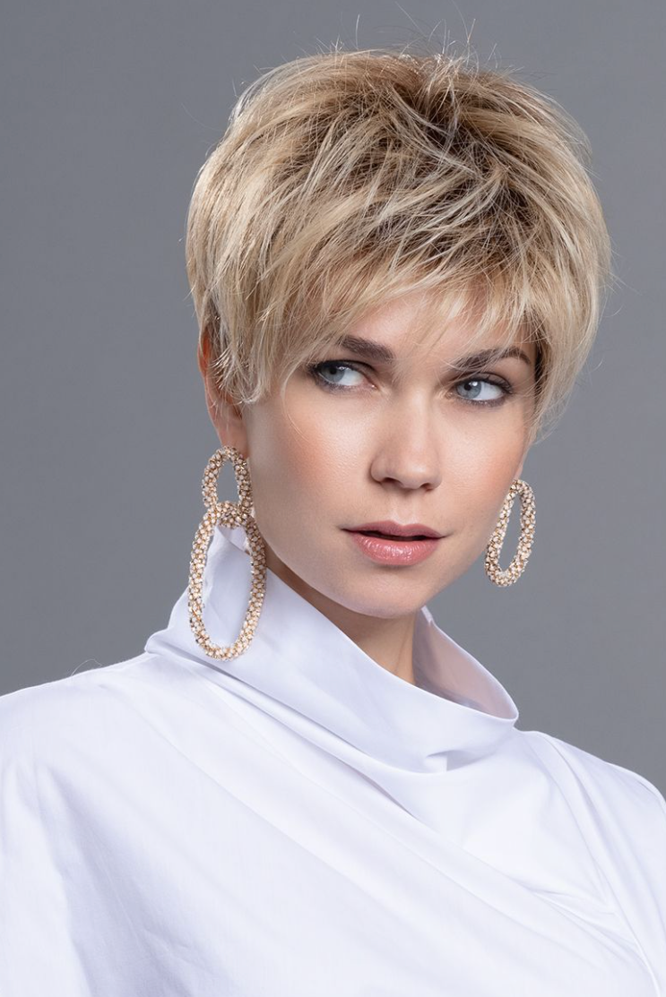 Elan by Ellen Wille Changes collection is a pixie design cut in a heat synthetic fibre. Made with a mini lace front with a wefted back design