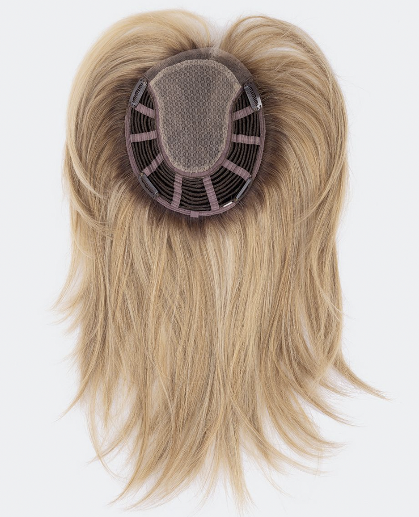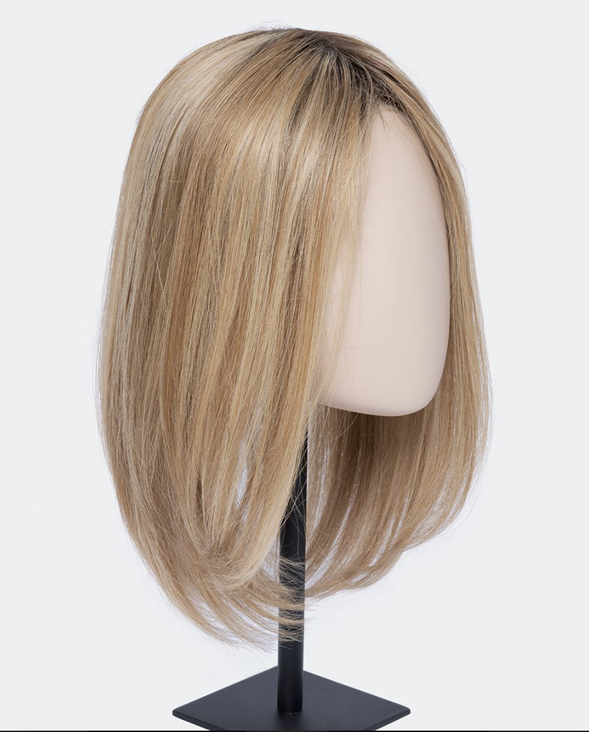Famous Ellen Wille Human Hair topper is a straight medium length design, easily attaches to your existing hair by x4 pressure clips. Made with a monofilament base and lace front for off the face styling.