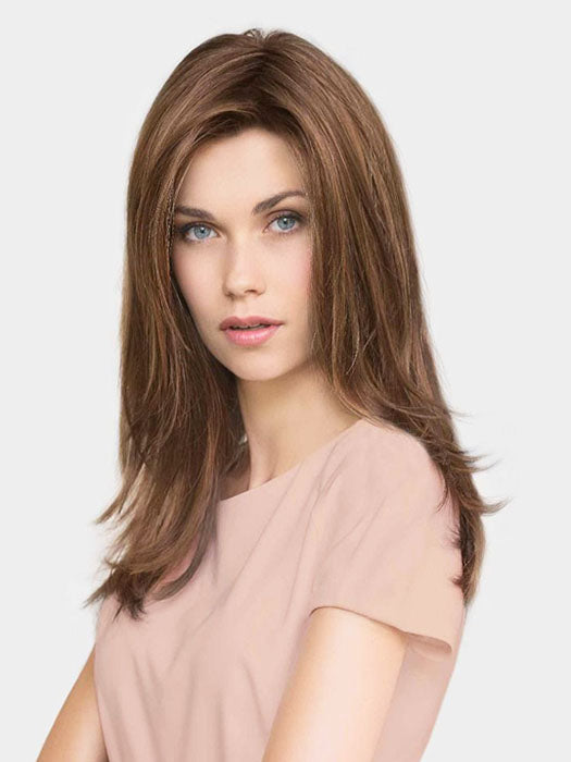 Glamour Mono by Ellen Wille part of the Hairpower Collection is a beautiful long design with face framing layers The impeccable ear to ear extended lace front offers you confidence in a seamless, natural hairline and a monofilament part for a natural looking part. The premium synthetic fiber used to create the Glamour Mono mimics the appearance, feel and movement of natural hair.