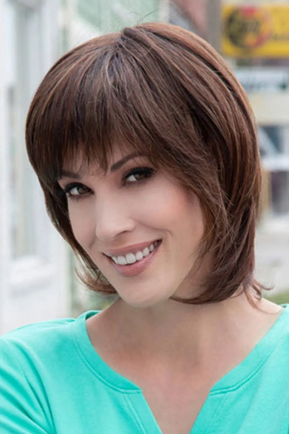The Grace Wig by Envy features a timeless design with voluminous side-swept bangs and long, face-framing layers. Our signature Envyhair heat-friendly fiber blend and Mono Top construction with hand-tied sides and back offer the flexibility to style her in any desired manner.