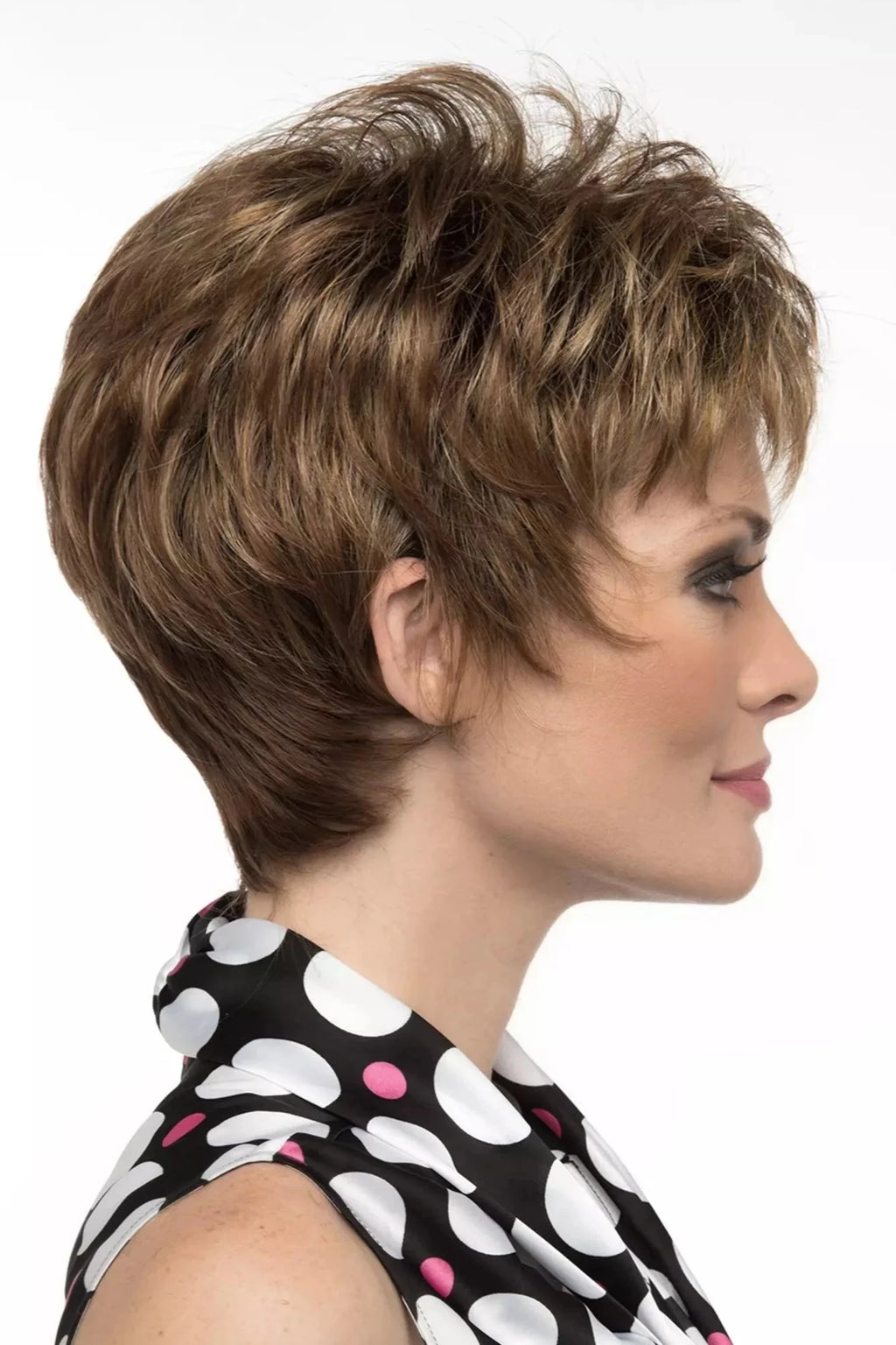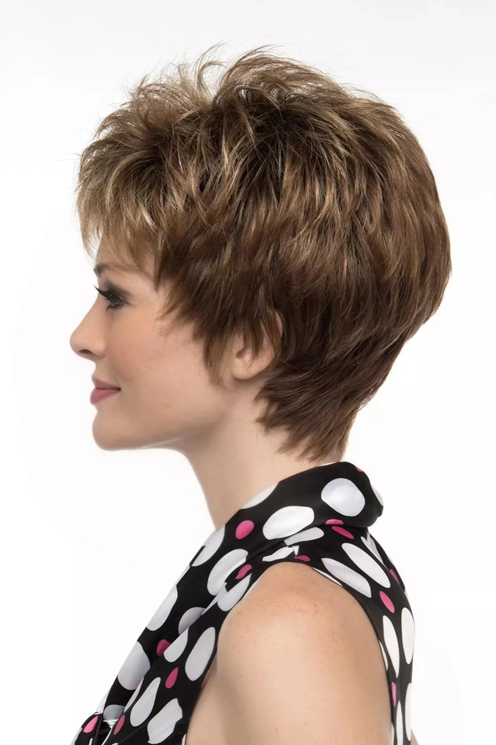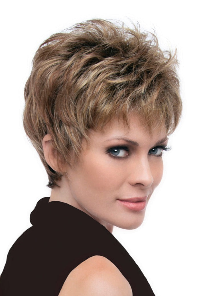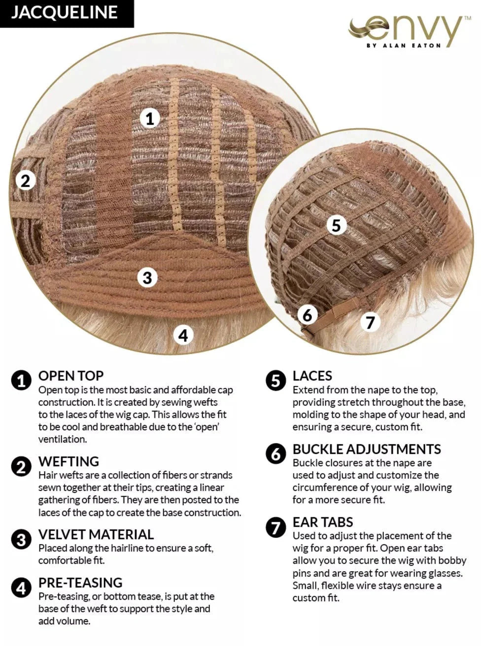 "With her gossamer-like Open Top construction and her ultra-modern pixie cut, Jacqueline Petite by Envy is the essence of comfort and style. Short on length but generous on volume, this wig has dreamy, wispy bangs and the perfect layering to accentuate your cheekbones. The open top design ensures complete coverage and maximum styling flexibility. Jacqueline is also available in an average cap size."