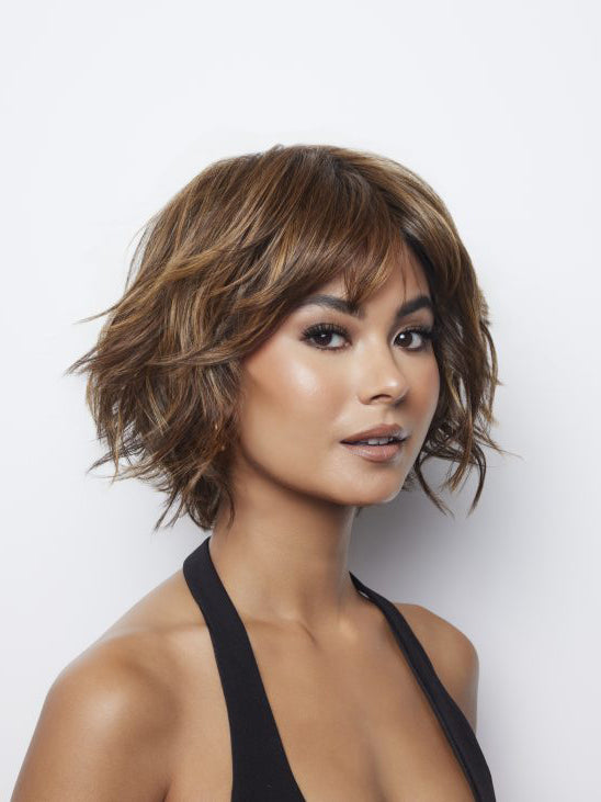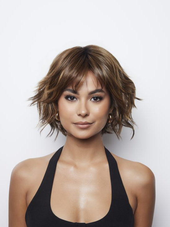 Colours may appear marginally different then shown in displayed image depending on the hair fibre or style. Each colour in the images shown can change from one screen to another. As well some hairpieces are made by hand, and each individual hair colour can slightly differ in shade. These colour swatches are intended to give you a good depiction of the shading, yet may fluctuate slightly from one piece to another.• design: wig