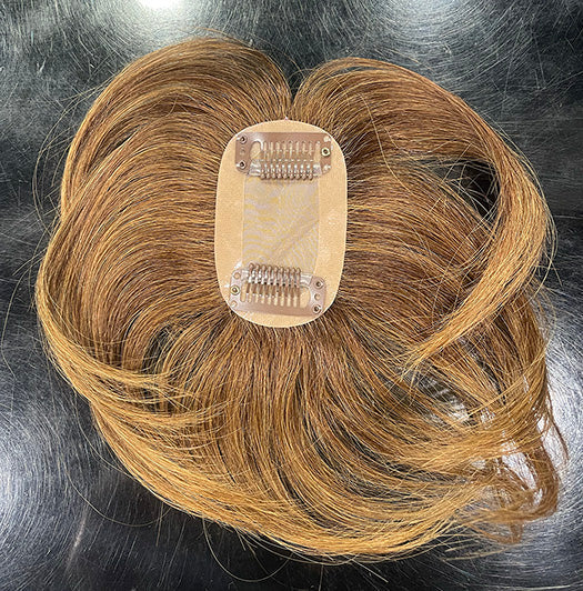 Mini Topper by Amore is a human hair topper that is worn over the part of your existing hair adding volume and length. Ideal for medical crown hair loss or thinning. Mini Topper is made with a monofilament top for the most natural looking hairline.