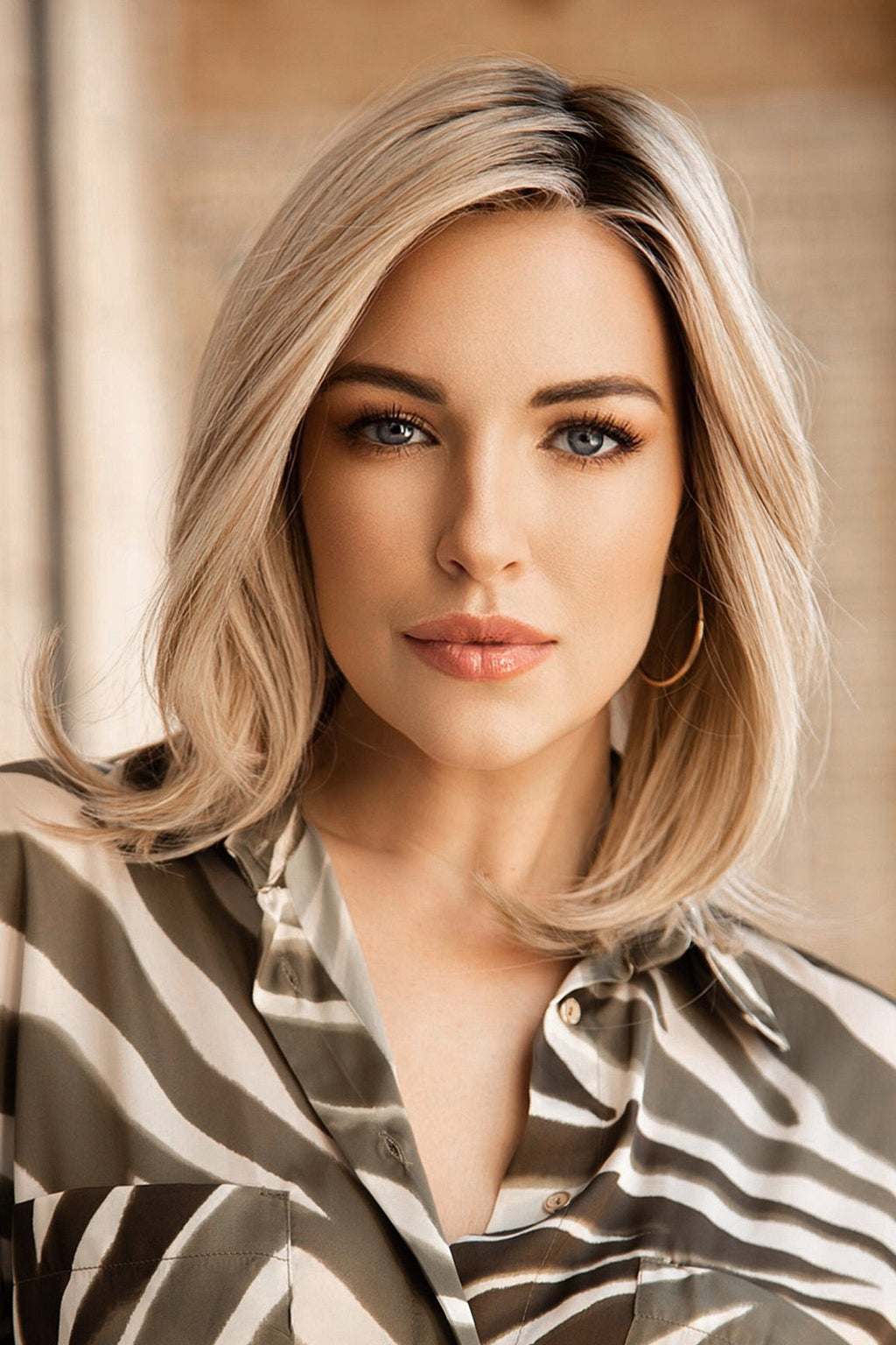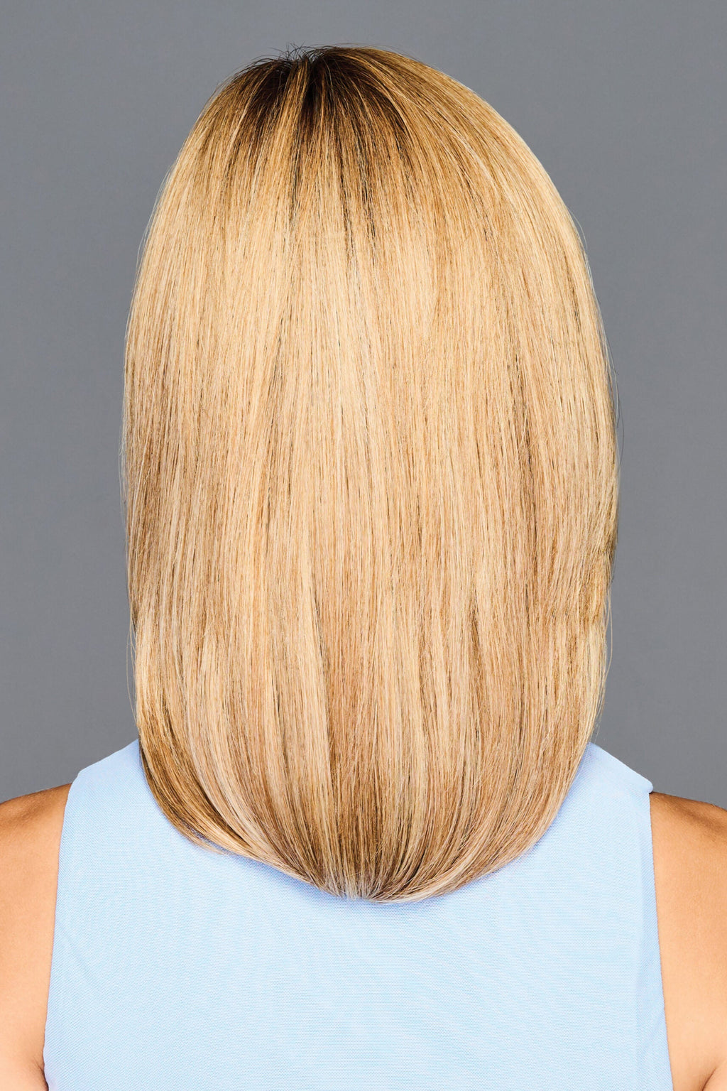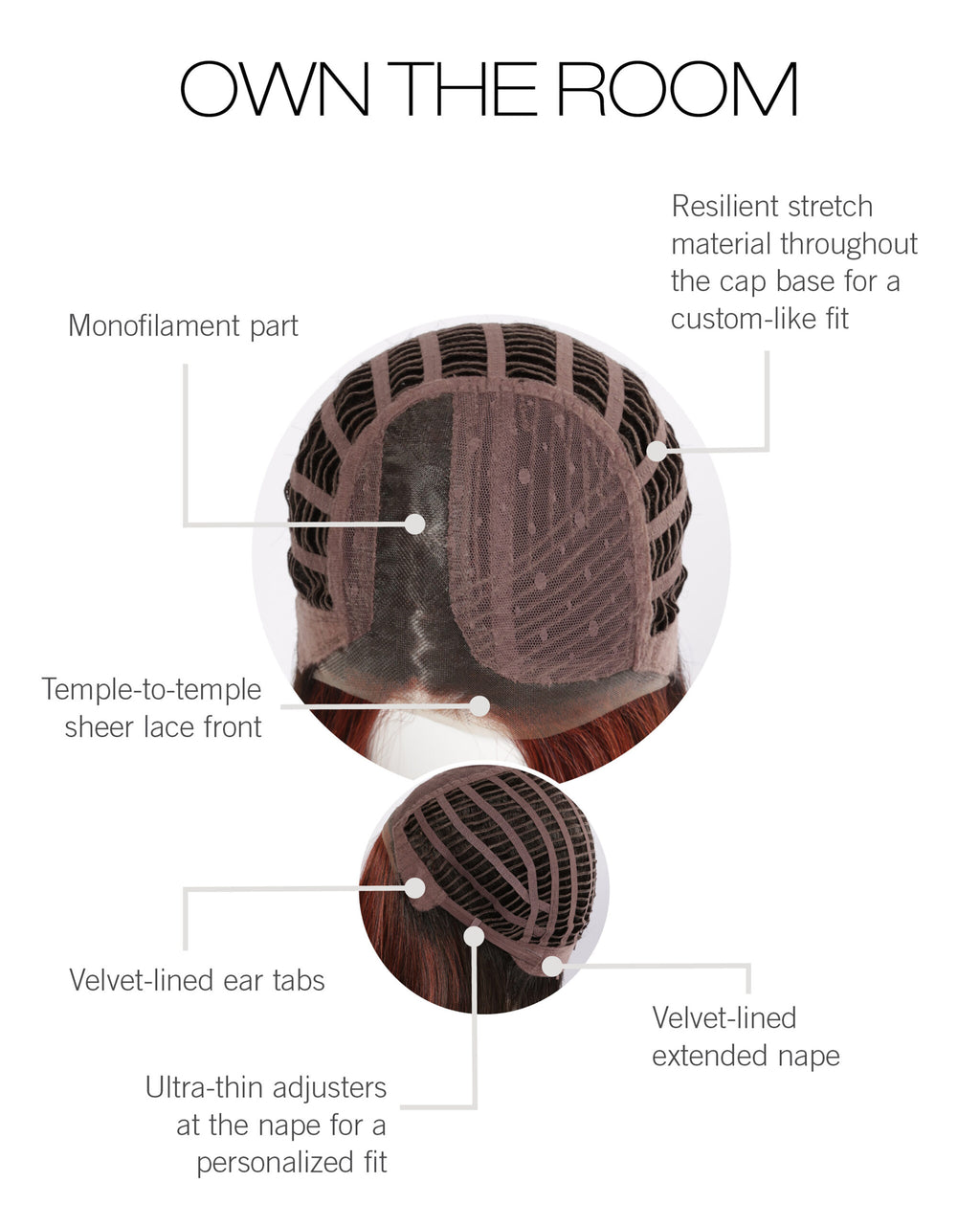 The Designer Series by Gabor presents Own The Room Large, a sophisticated mid-length style featuring elegant long layers that create a timeless, effortless appearance. Its extended monopart and lace front deliver a natural-looking hairline with reduced crown fullness. Versatile and alluring, this captivating style can be styled half-up or swept away from your face, ensuring you'll command attention wherever you go.