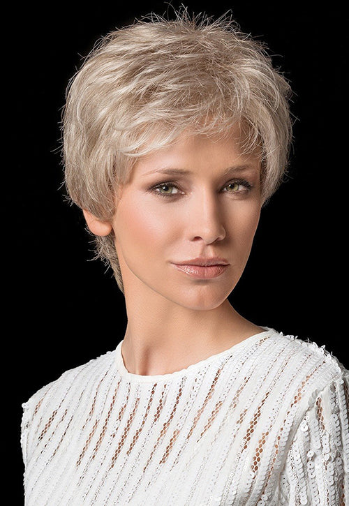 Posh by Ellen Wille part of the Hair Society Collection, is a soft layered, brilliant short synthetic wig. Posh base construction consists of a detailed partially hand-tied cap where each and every hair has been individually weaved, an invisible lace front that blends naturally against your hairline for off the face styling and a monofilament top that resembles the most realistic hairline and enables parting versatility and multi-directional styling.