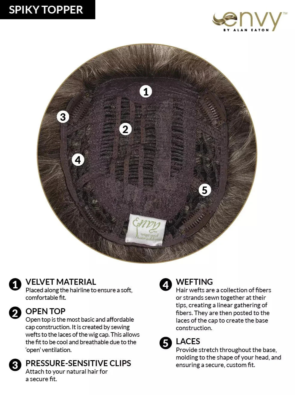 Our SPIKY TOPPER adds salon-worthy edge to your look in minutes—while adding generous coverage where you need it most. Featuring our Open Top construction for supremely natural movement—and available in 15 multi-dimensional shades—our Spiky Topper adds lush volume and coverage where extensions can’t reach.